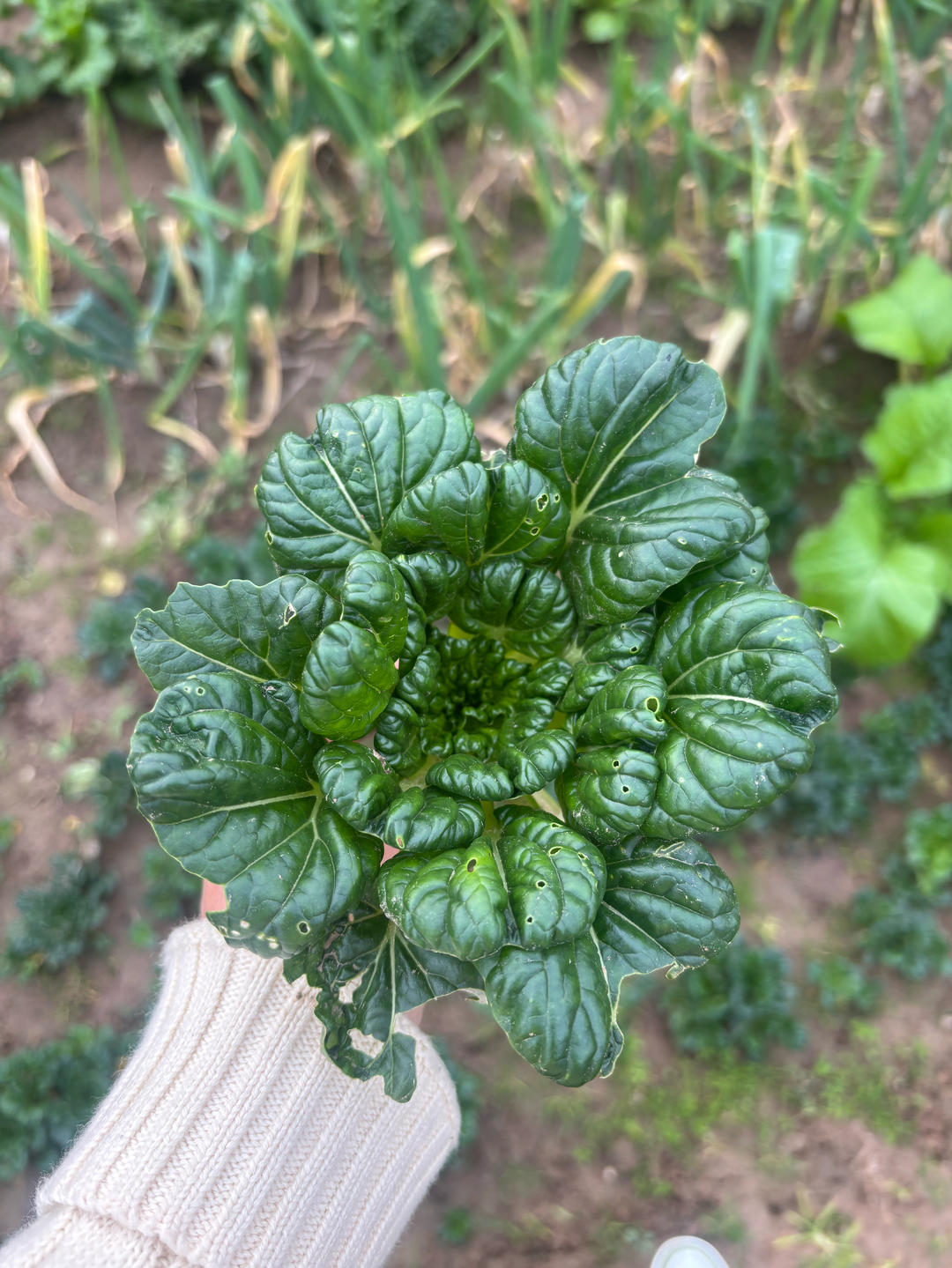 初冬菜园的塔菜,萝卜,和芹菜。