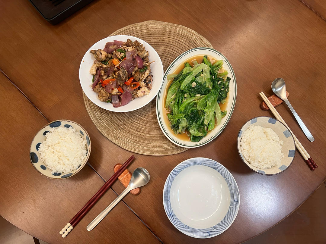 芋头,醋溜包菜。青花鱼(还煮了明天的),希望明天不要忘🥹