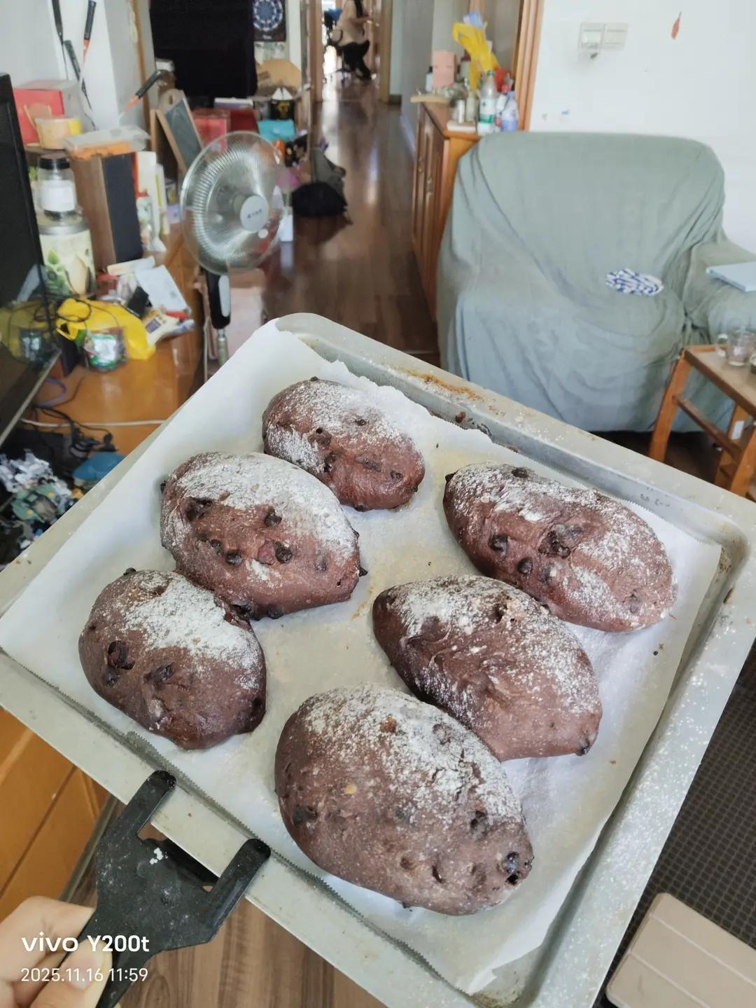 高粉(新良日式)200克,法芙娜可可粉14克,水174(0.87),盐3,鲜酵母8克(我...