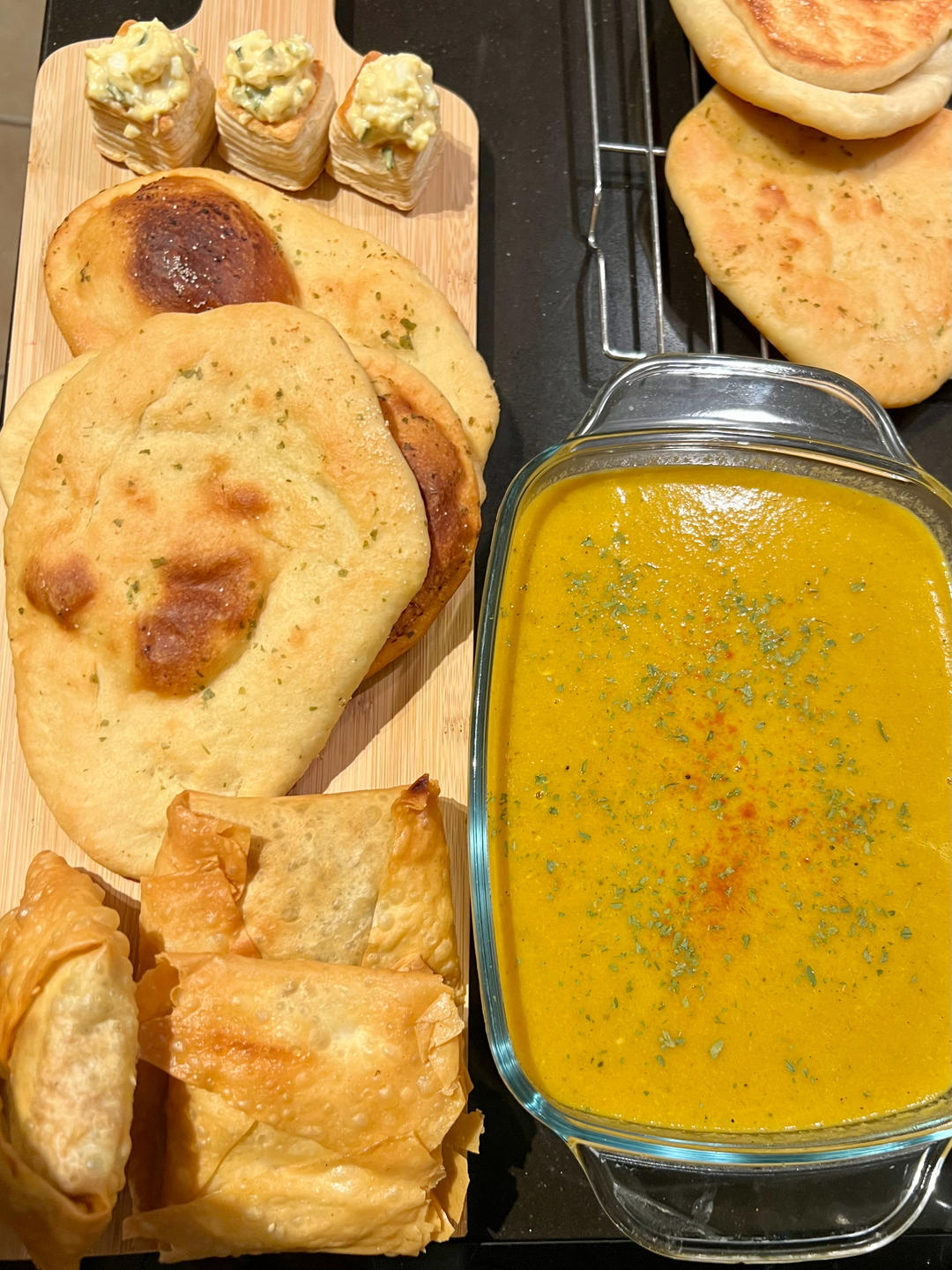 一夜之间入冬的感觉,用剩下的秋天食材告别秋天。Harrisa汤,自制naan,eier...