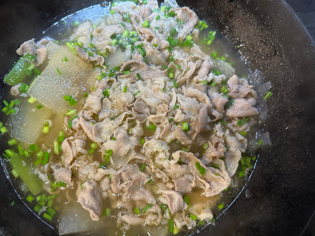 非常鲜美的冬瓜羊肉汤,优化了一下方子,羊肉片提前焯好捞出备用(不用等开锅,出了沫羊肉刚...