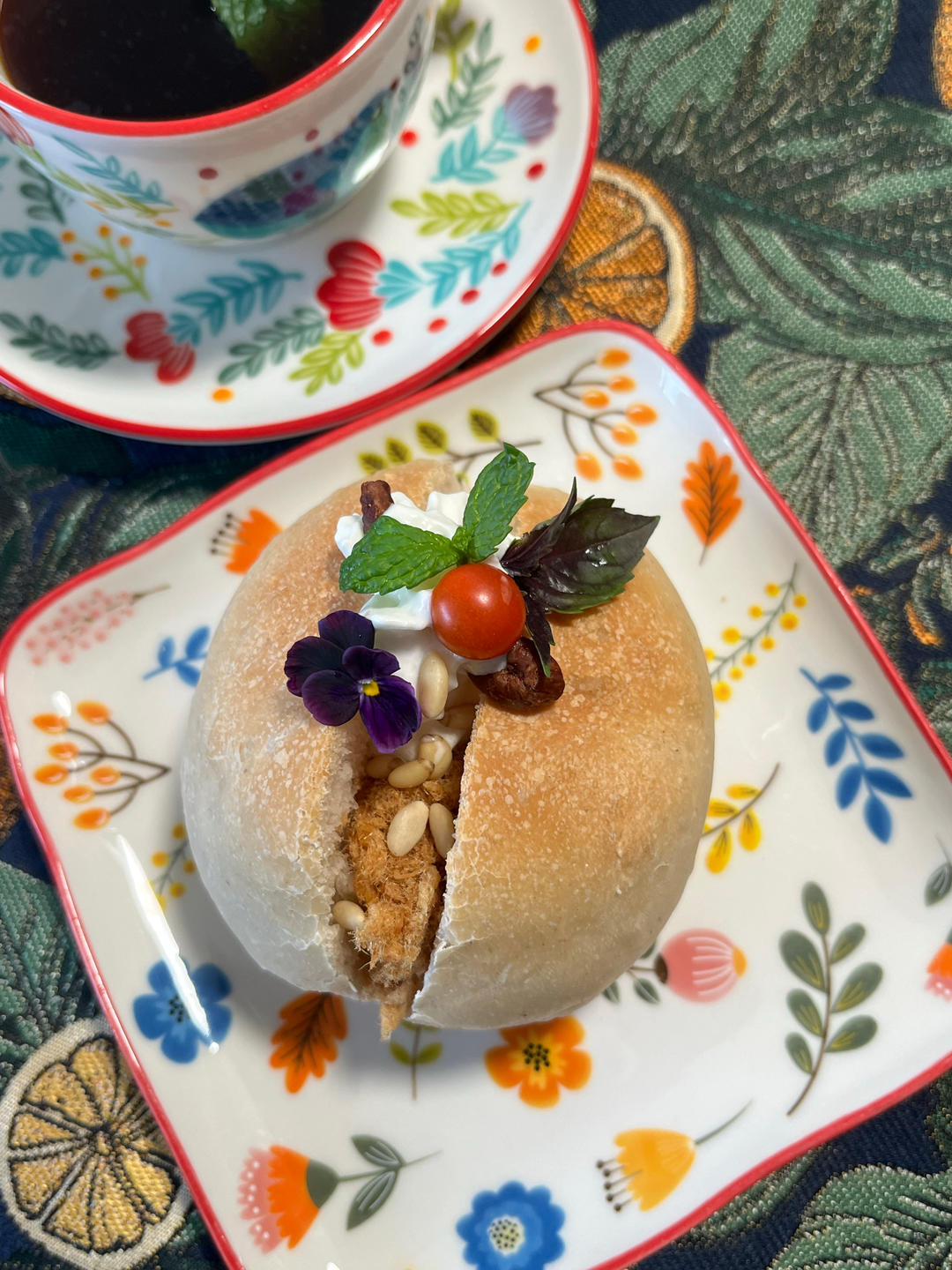 #下午茶·鲁邦种肉松奶油配各种香草坚果面包#