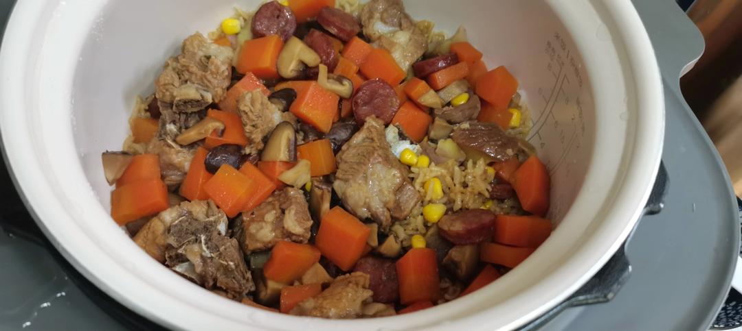 照着另一个菜谱,把葱姜蒜换成了洋葱和香葱炒出来的葱油,加了板栗和腊肠真的特别好吃