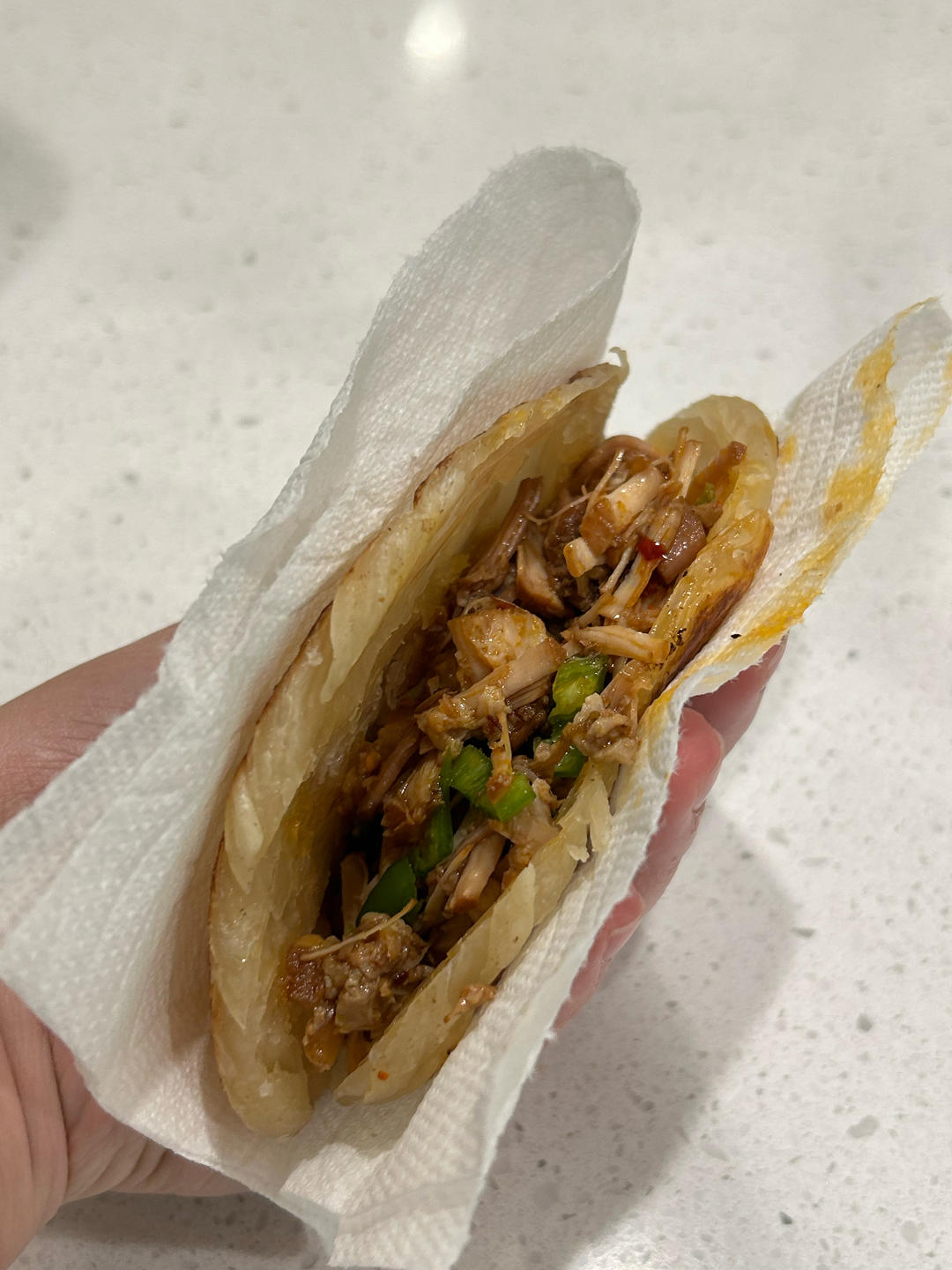 到做馍那一步丧失了理想 改用手抓饼坯弄了个壳,也挺不错的。青椒是异端也是灵魂233