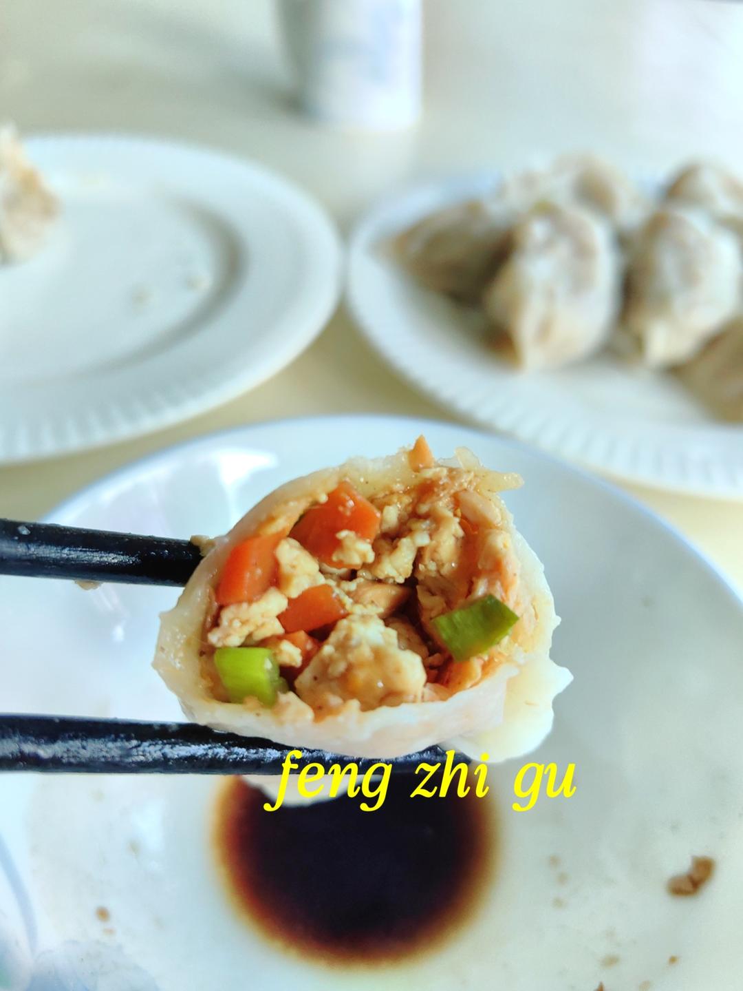 补发小年的饺子,豆腐、鸡蛋、西芹、胡萝卜、三文鱼馅,非常好吃,爱了!