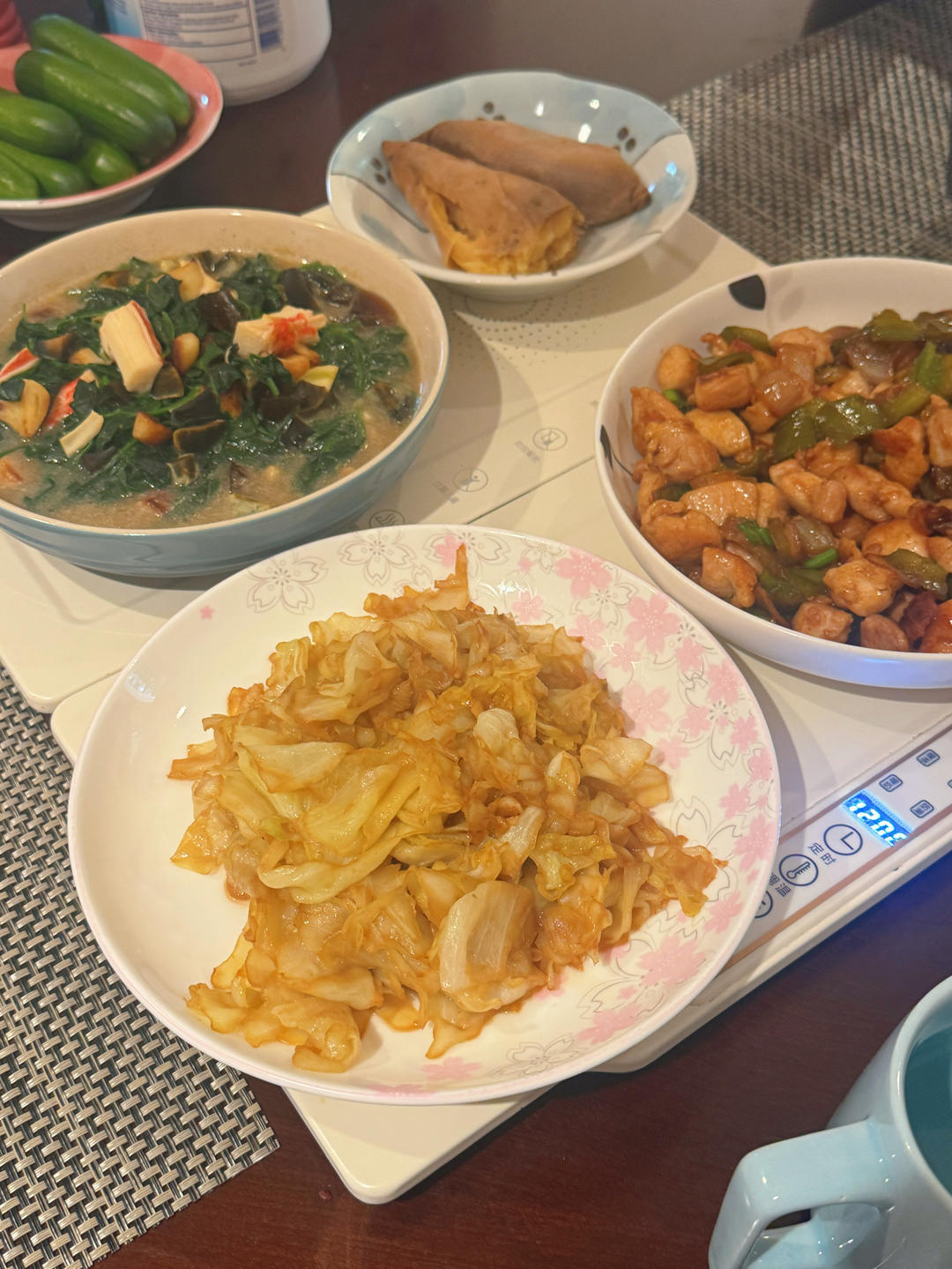 (今天的晚餐忘拍了,记录一下:红烧排骨、煎绿豆咯吱配蒜汁、宣威火腿炒荷兰...