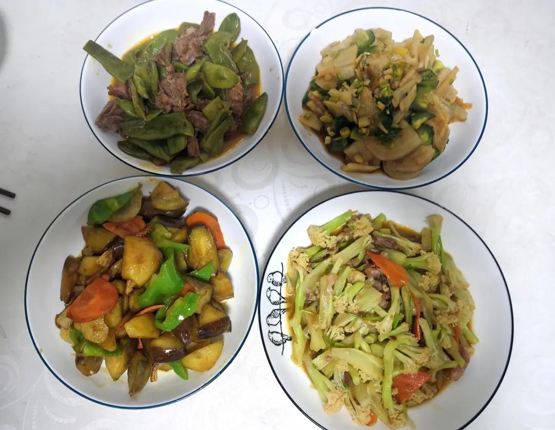 2026年1月9日 晚餐:炒菜花+地三鲜+炒豆角+黄瓜拌藕+餐后甜点(芭蕾舞女孩)