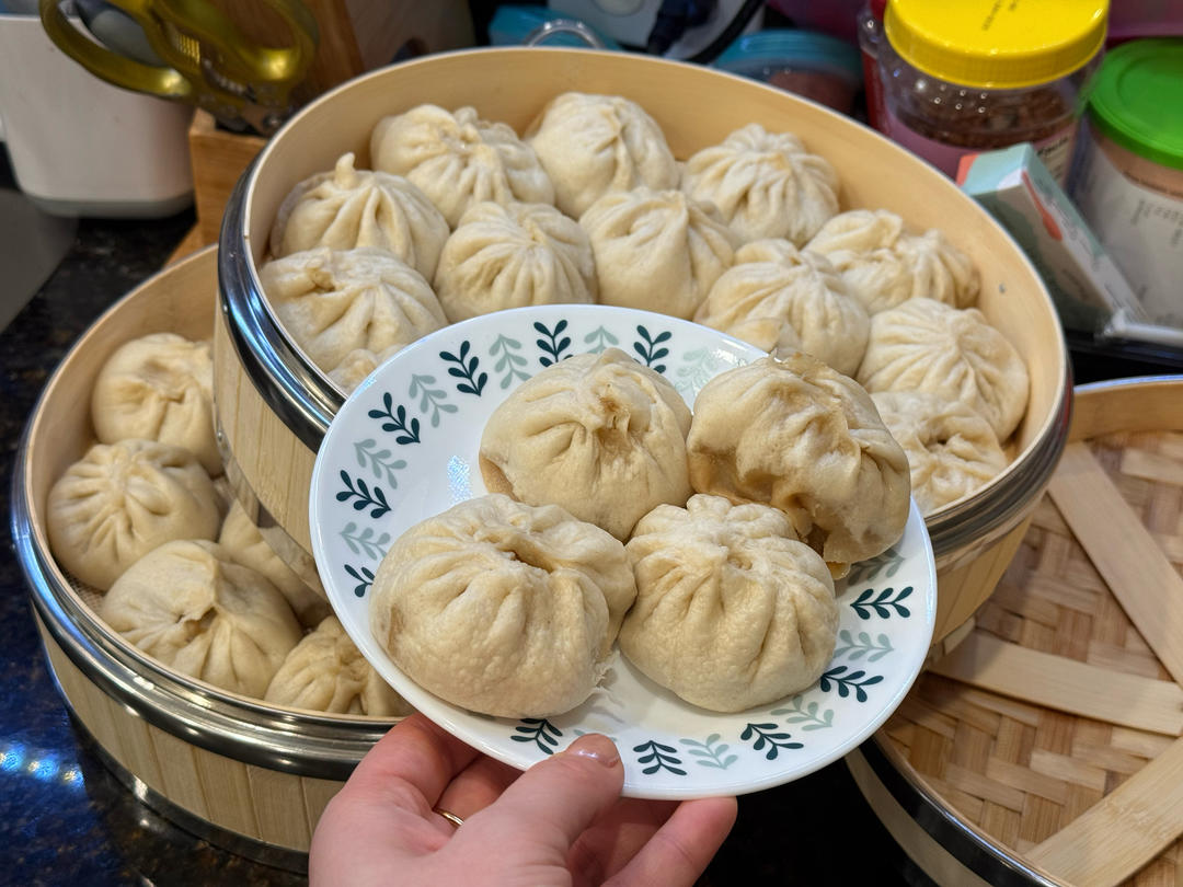 🦐 超市真空装的猪肉馅有点瘦了,强行加了些猪油拌进去。