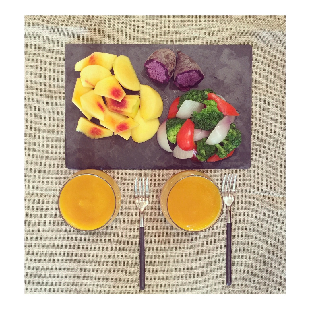 早餐:南瓜糊,黄桃,紫薯,水煮蔬菜