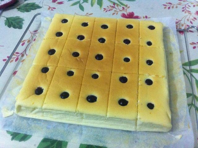 取出冷却,切块。