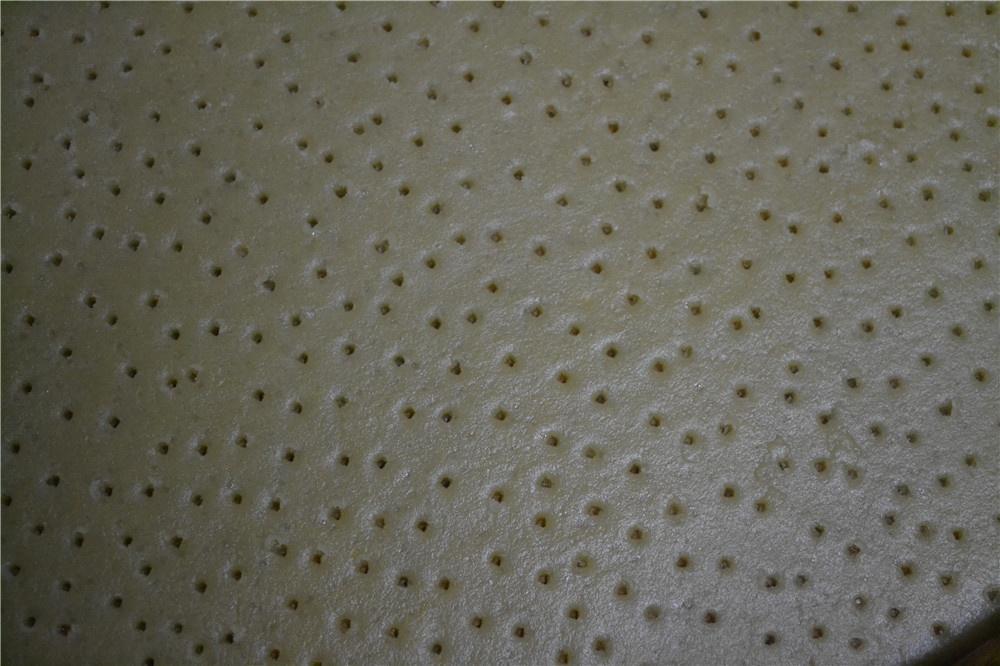 将擀薄的面皮扎许多小孔孔。