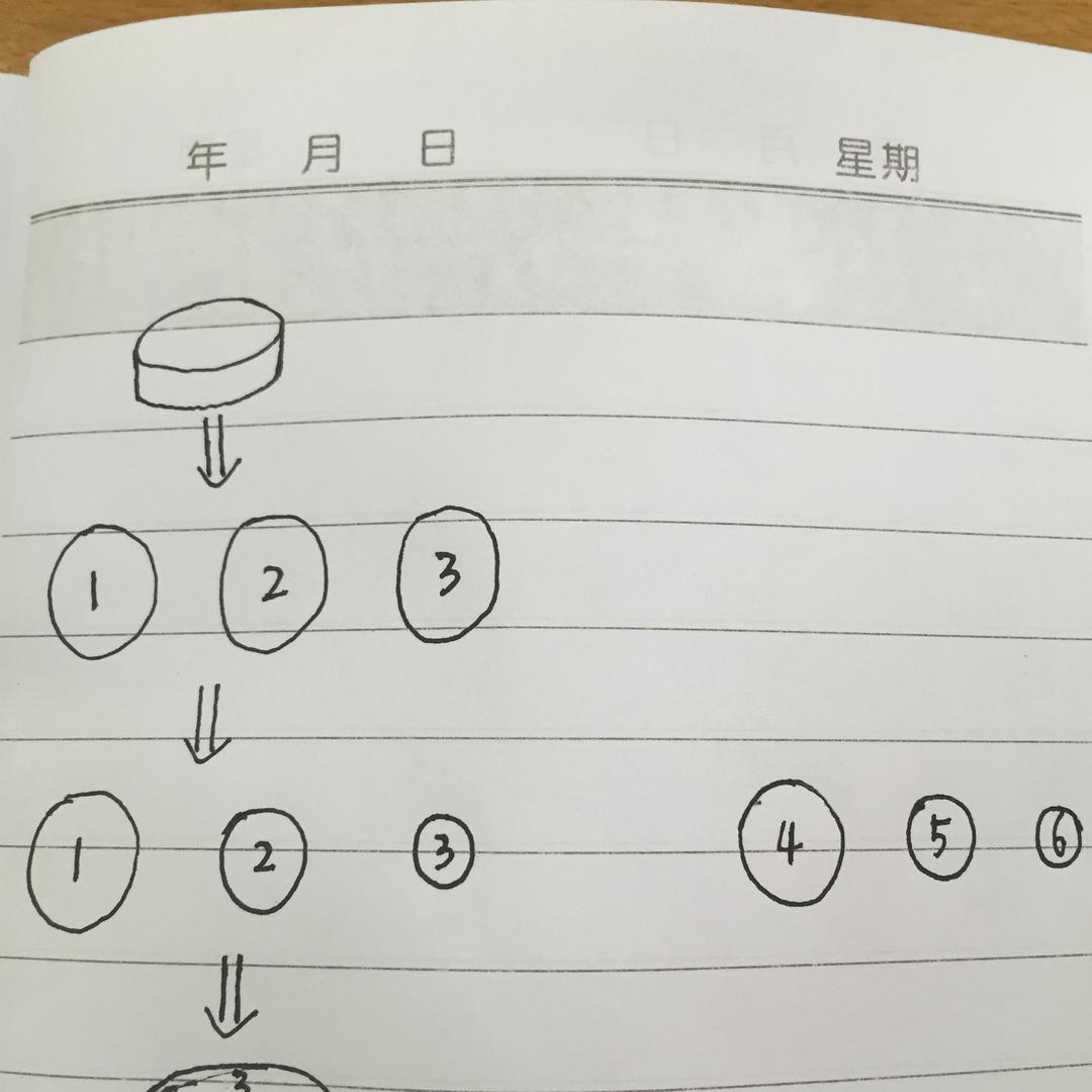 然后就是一片蛋糕胚,一层奶油霜这样叠起来。为了做成球状,也为了切面好看,叠的次序如示意图。。。