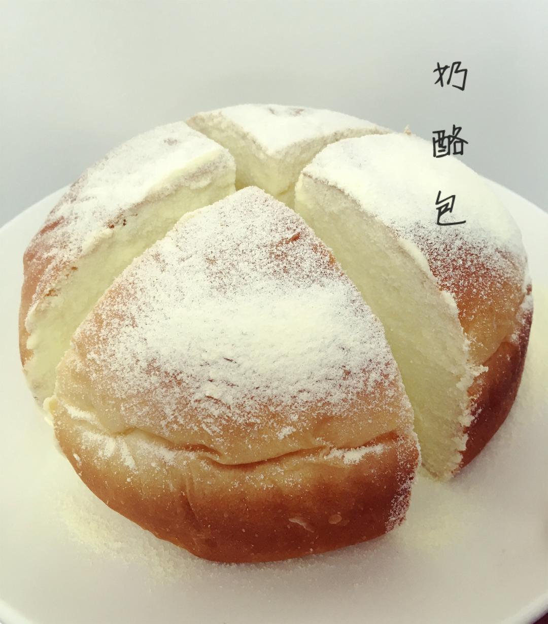 装饰用的奶粉和糖粉过筛混合,把奶酪包侧面沾上奶粉和糖粉,再在表面撒上一些,就可以食用了 😋