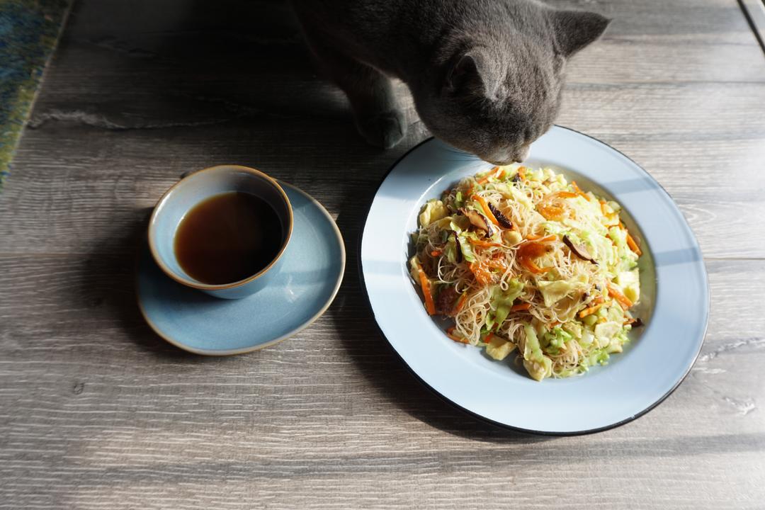 4:炒粉干步骤: a:先把鸡蛋入锅做成薄蛋皮,精致点的小主们可以把蛋皮再切丝。 b:重新热锅,倒入猪油(替代传统五花肉片),放姜。锅热后,加入香菇、胡萝卜、虾干,待胡萝卜炒软后,倒入泡虾干的料酒。 c:此时加入粉干与包菜,左手铲子,右手筷子,一起翻炒,若遇锅变干,加适量泡香菇水,一次次少量加。 d:加入鸡蛋,炒匀后,加盐出锅摆盘。