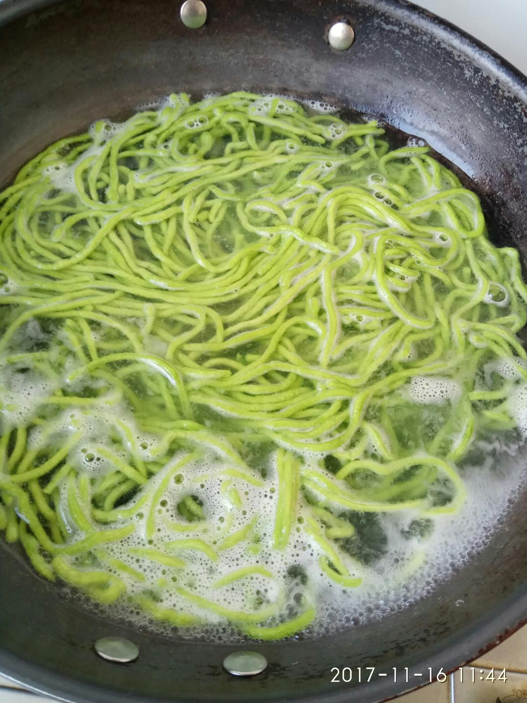 煮面,同时准备菠菜拌料