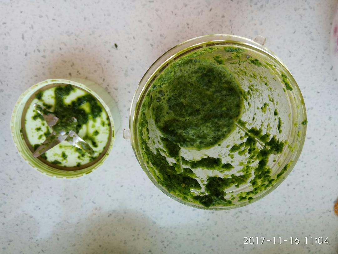 菠菜150克,切小,接下来要分成两份用料理机打碎。