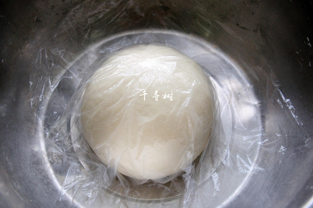 再加入冷水,揉成光滑的面团,盖上保鲜膜松弛一会儿。