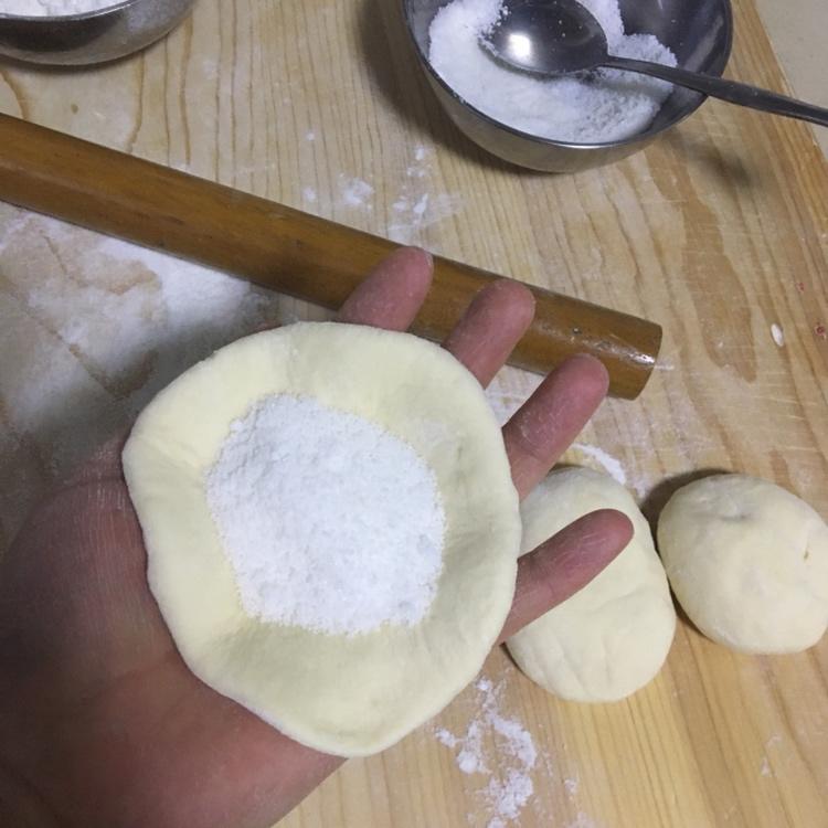 把糖包压扁,擀匀