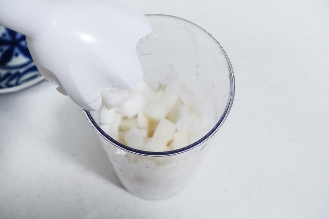 萝卜切成小块,用料理机打成泥备用。一定要打成泥哦。