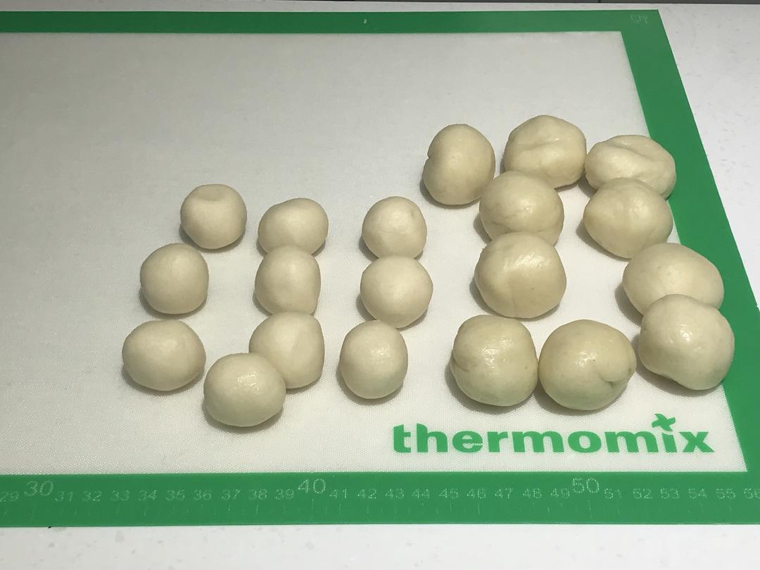称重,平均分割20份,揉圆。 盖上保鲜膜。