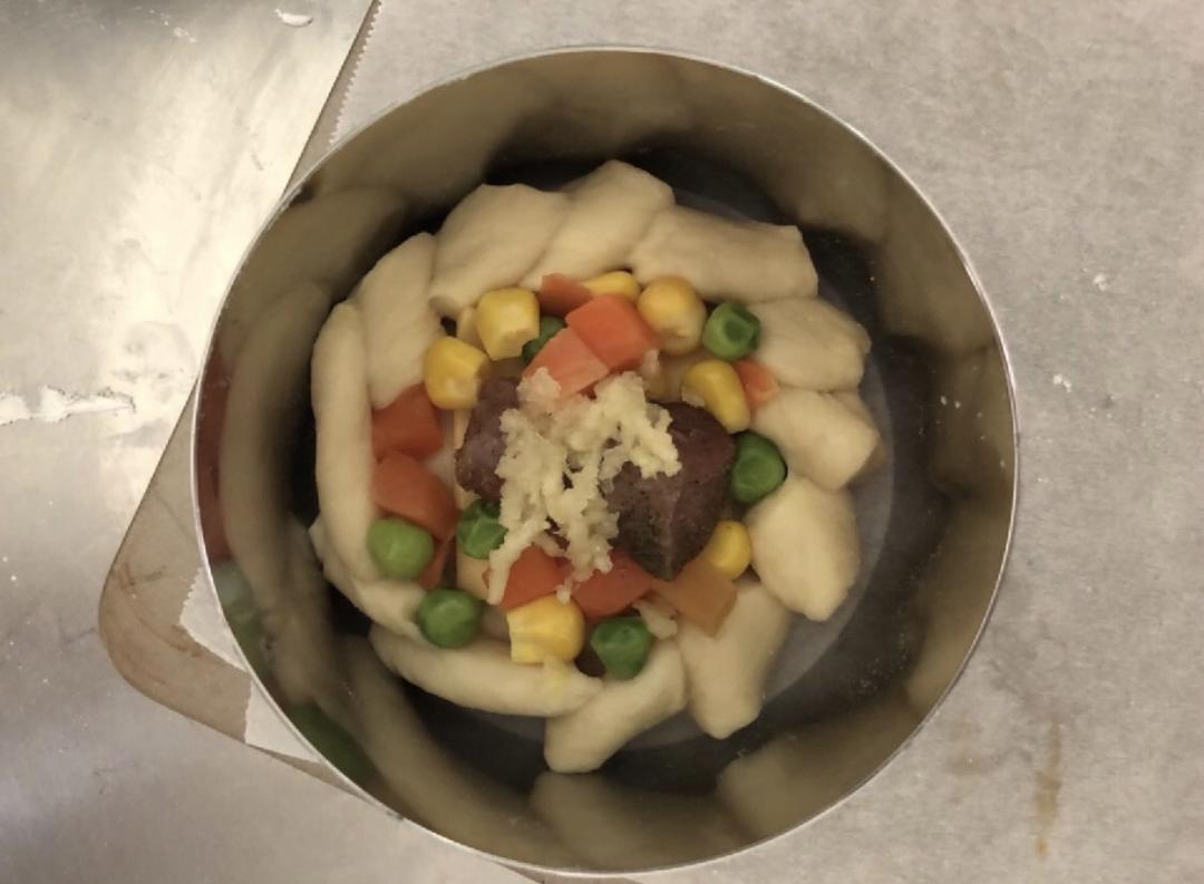 羊肉事先拿盐 孜然 黑胡椒腌制 然后150度烤3分钟 到8成熟(此步骤事先完成)