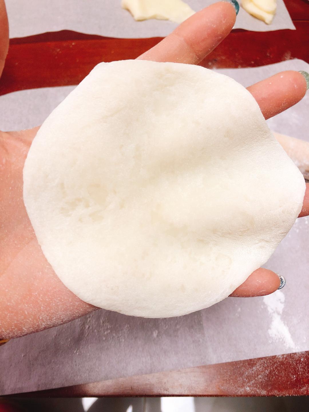 擀好的皮放一边,不要重叠,会粘一起,你会抓狂的,别问我怎么知道的😂