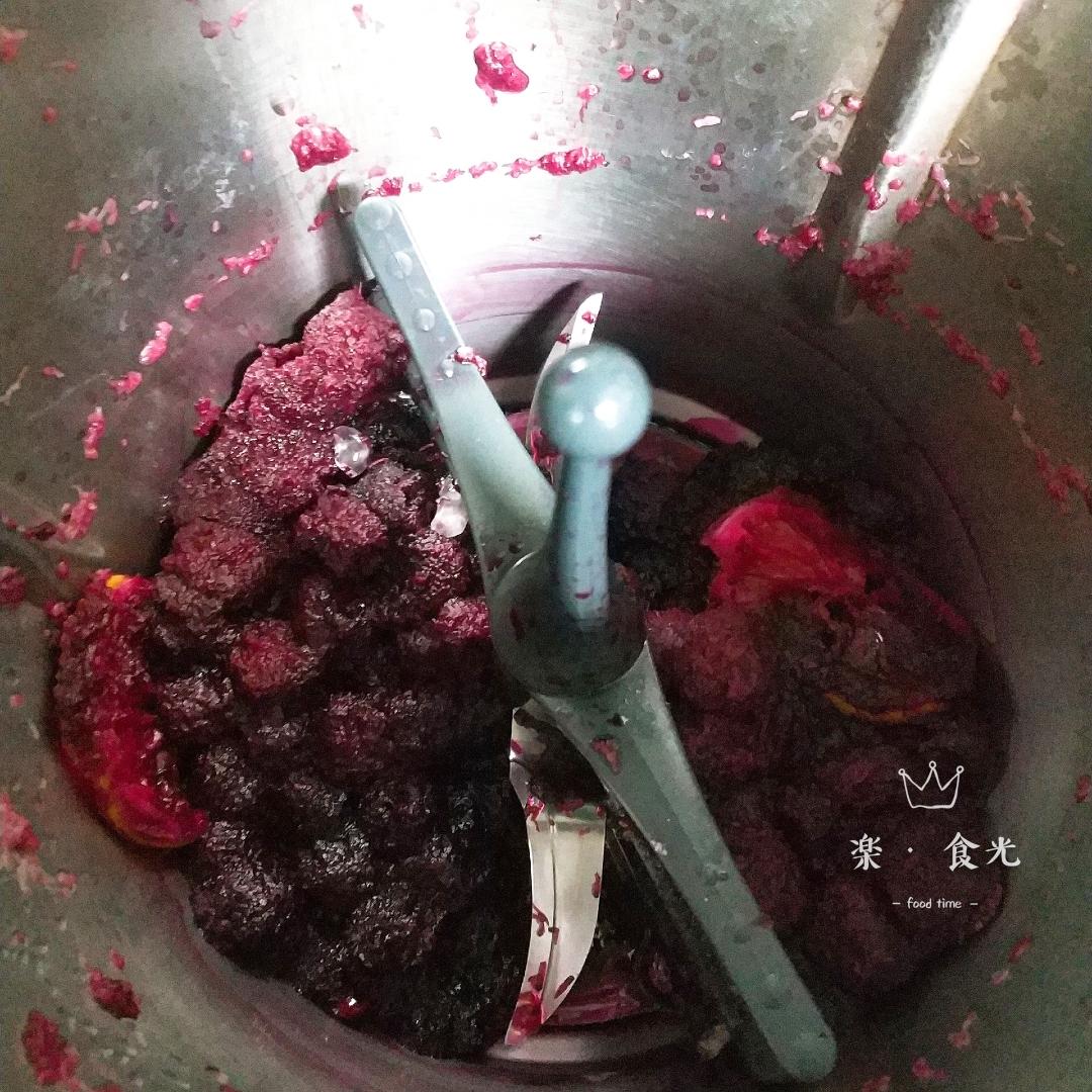 倒出杨梅的主锅不用洗,加点冰糖粉,加凉白开,没过刀头,30秒速度6洗锅。