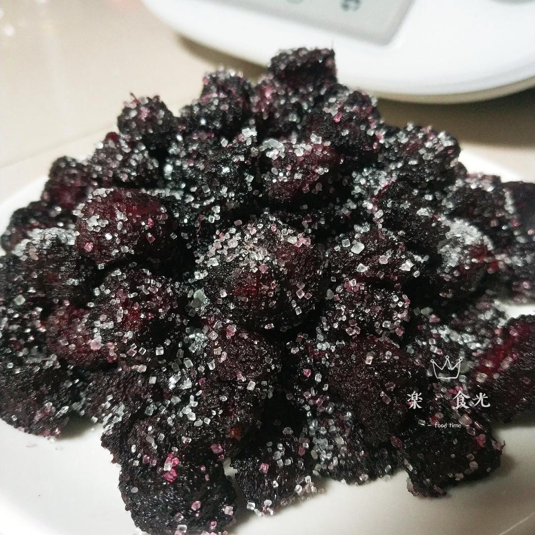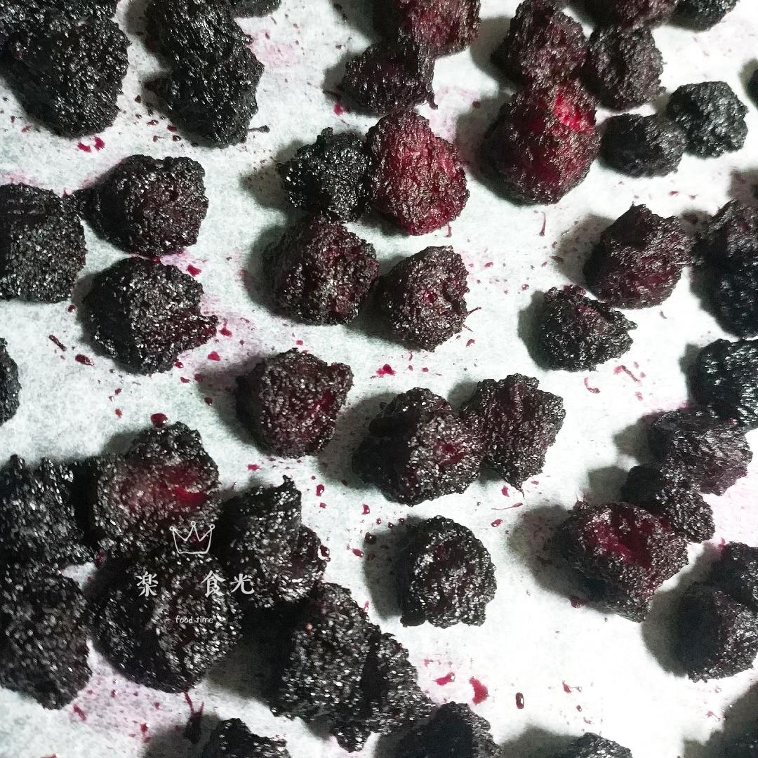 烤箱180℃预热,主锅里倒出的杨梅铺到垫了油纸的烤盘上,分开,180℃热风烤30分钟,注意观察,最后几分钟别烤糊了,各家烤箱脾气不一样。