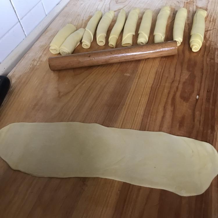 醒好的面滚、拉伸长条形