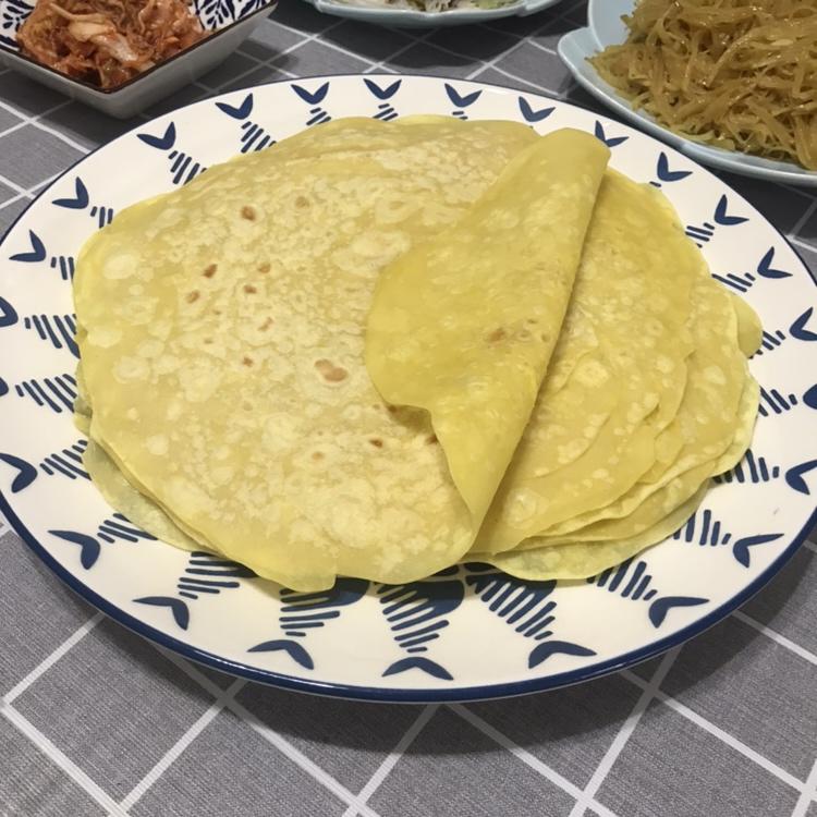 卷、葱、香菜、京酱肉丝、土豆丝、辣白菜、太好吃了😋