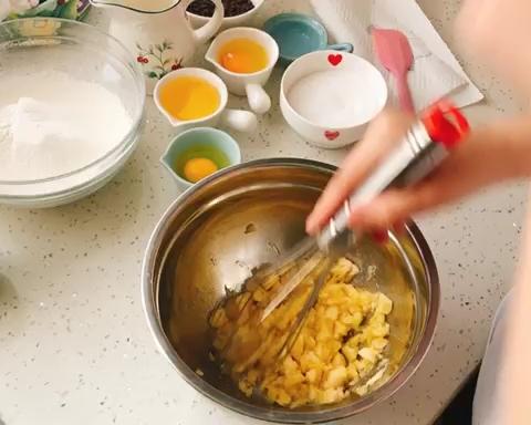 先用勺子把香蕉按压成泥~