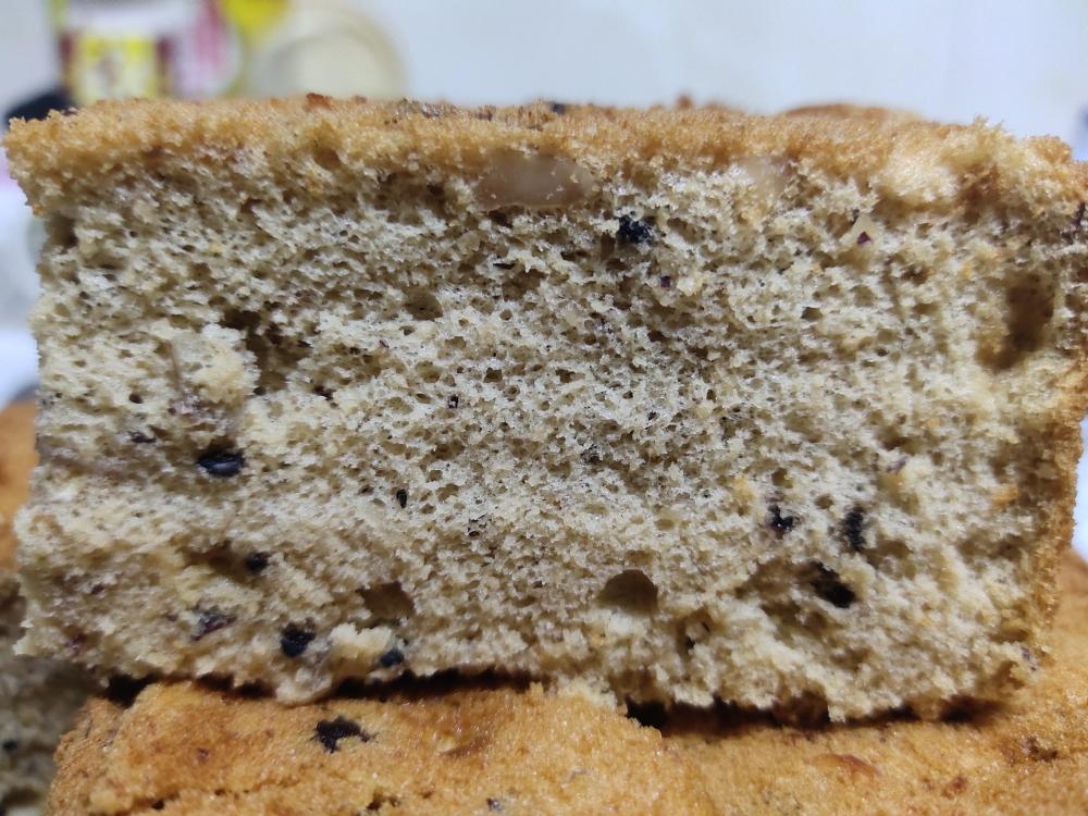 组织很均匀细腻,大孔是蓝莓干掉了的孔