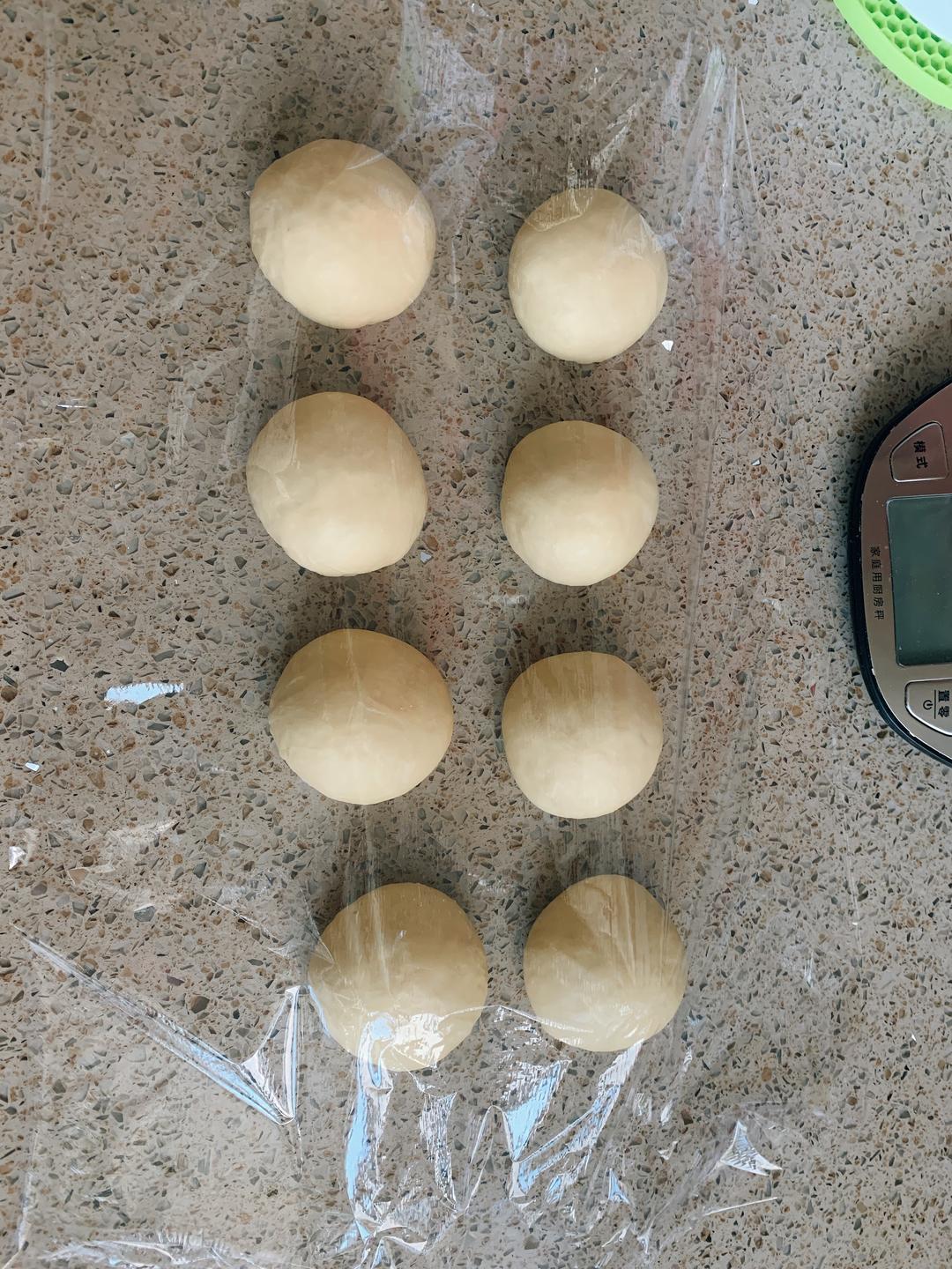 分8等分,揉圆,盖保鲜膜,室温醒发20分钟。