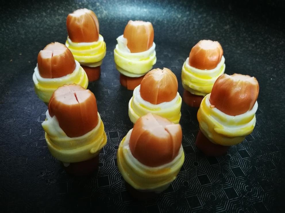 全部卷好了,排排坐,吃果果,顶部的那些肠衣边角可以直接切平更美观