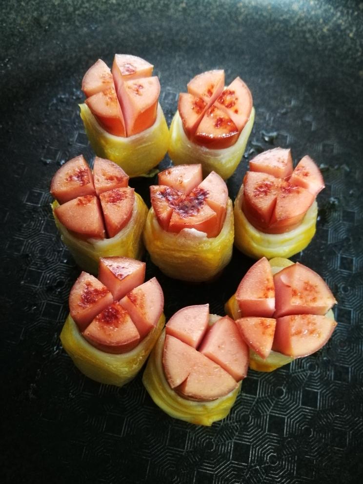 脆皮肠两端也可以煎一下
