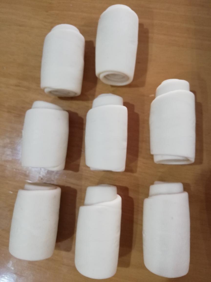 用油皮包住油酥,收口朝下……