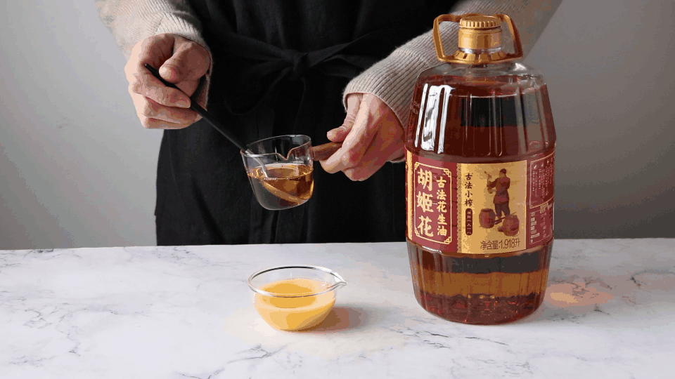 蛋液加5克胡姬花古法小榨花生油,使花生酥起到增色增香的作用,比只刷蛋液颜色更加亮泽诱人。