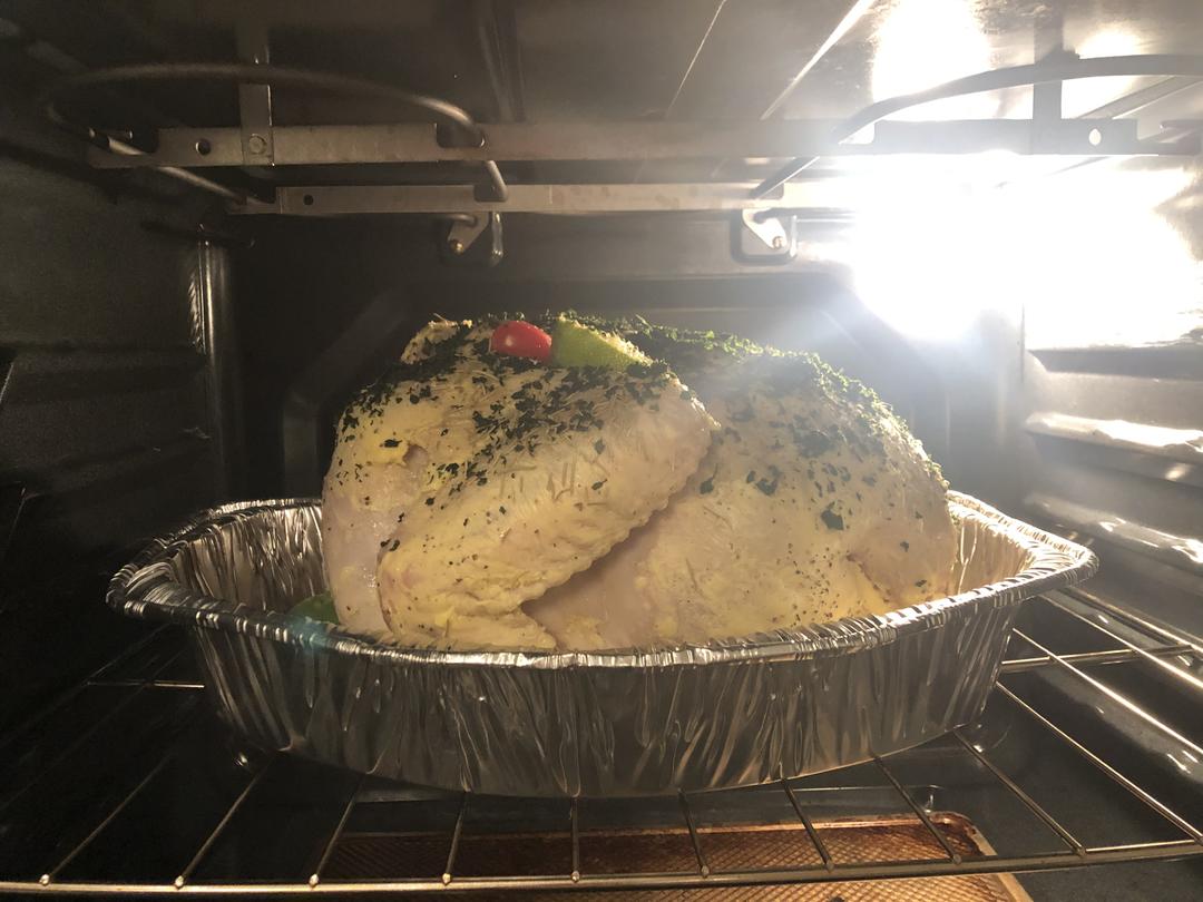 火鸡先提前解冻,(大概要解冻一整晚加一整个上午因为我这只很大)