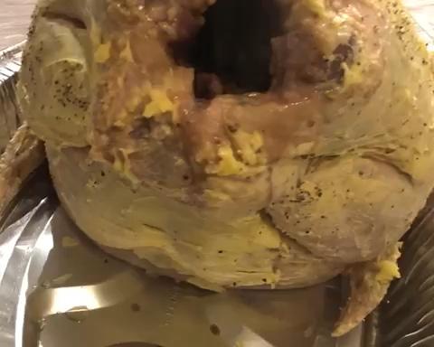 火鸡解冻后,先给火鸡爆菊(屁眼捅一个大洞!可用红酒瓶辅助一下