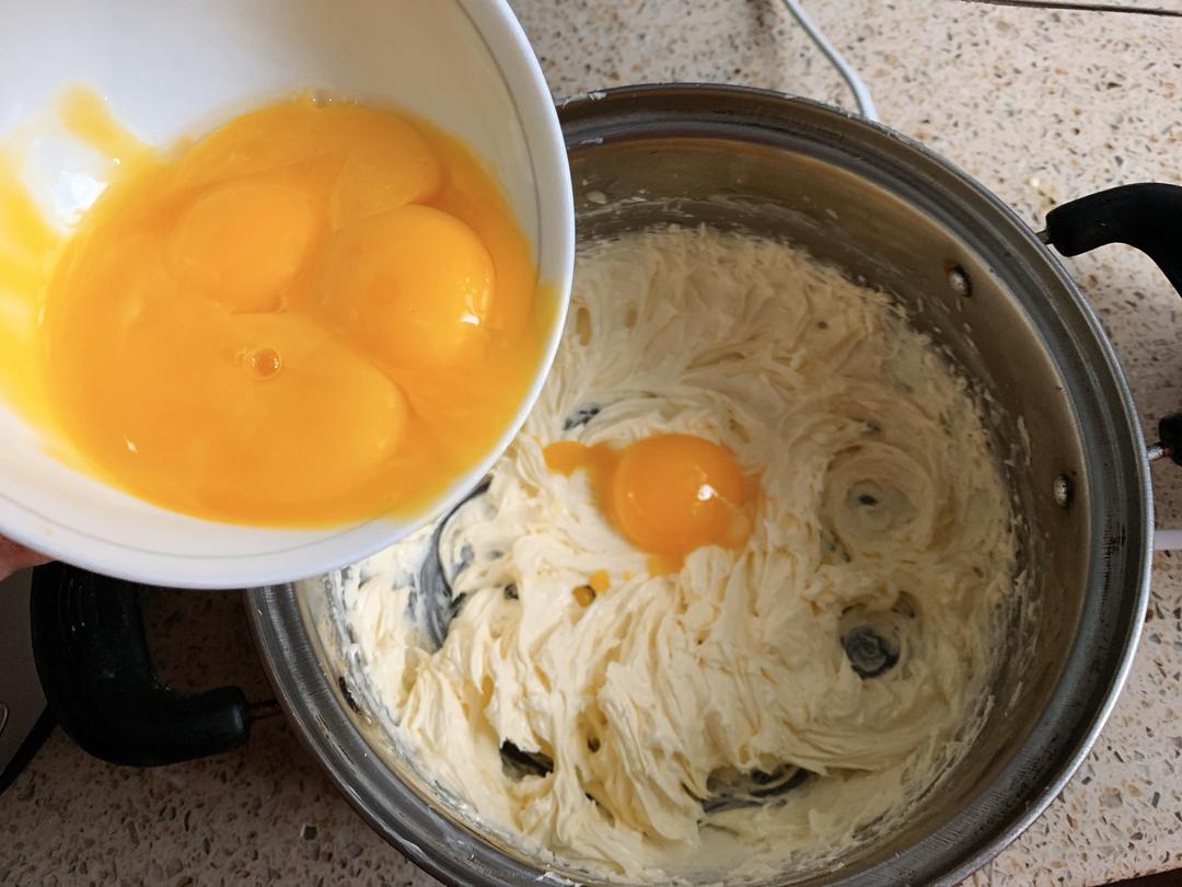 分次加入蛋黄,每次加完后,搅拌均匀再加下一次