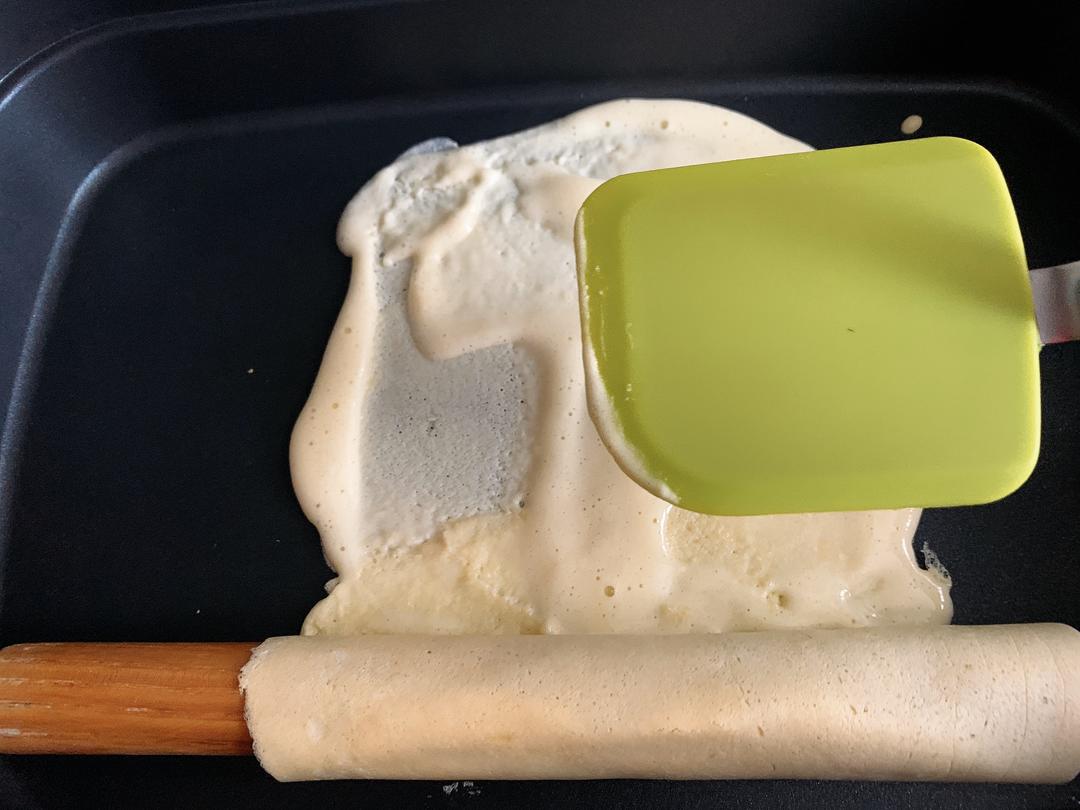 留一段边不要卷起来,继续加下一次的面糊