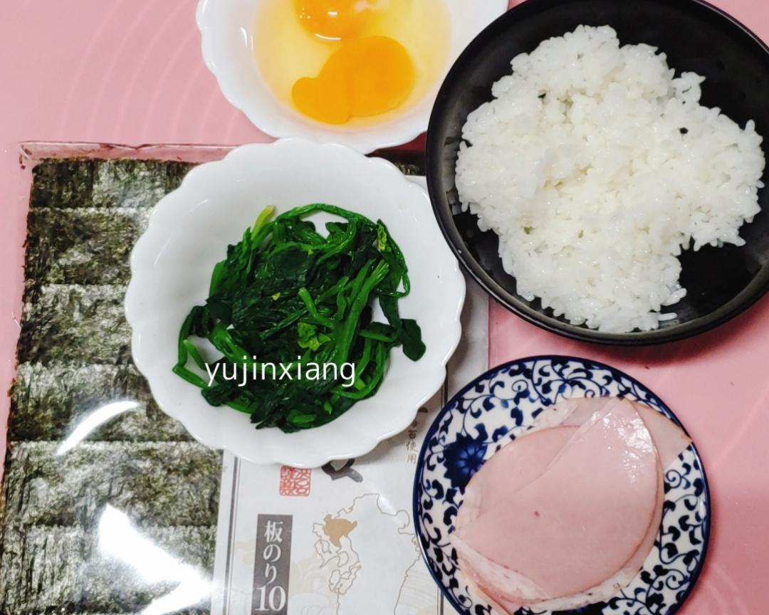 将步骤6卷好的鸡蛋卷放到2组菠菜之间。(如图)