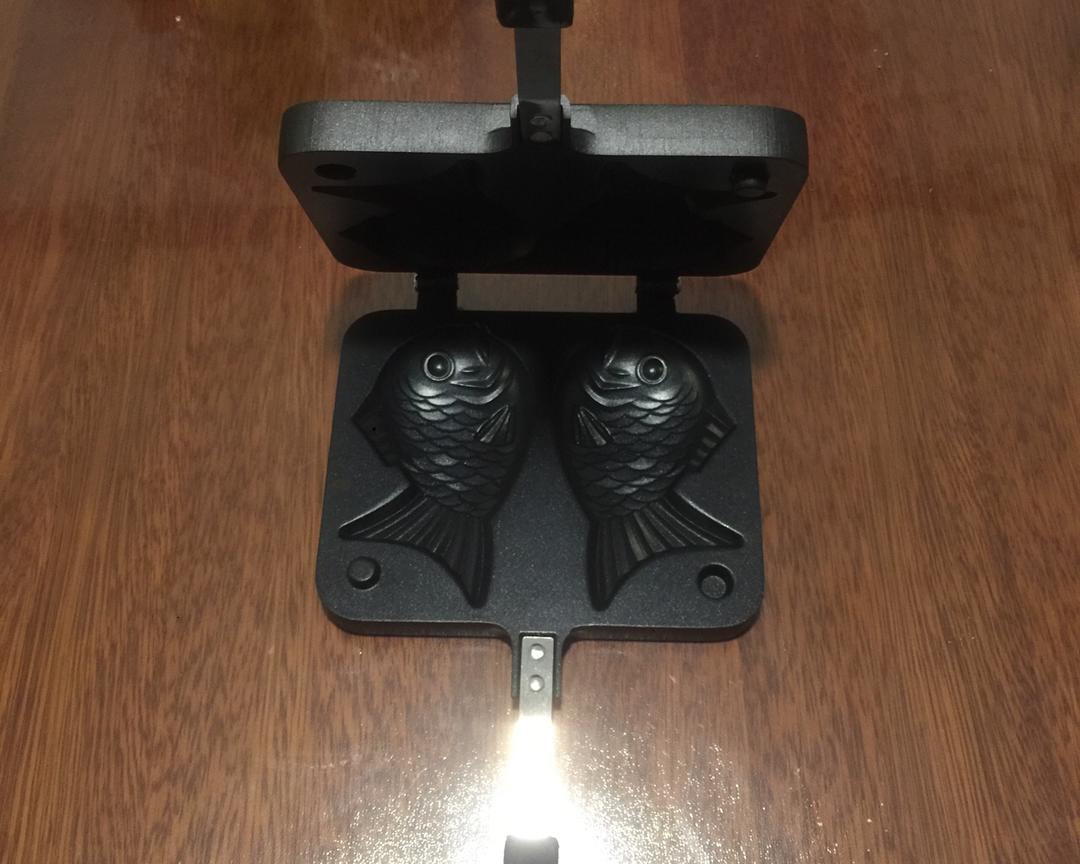 面糊装入裱花袋.燃气灶打开,用小火,磨具有点热移下来,先挤入鱼身子一层,不要在鱼尾巴上挤面糊.放入馅料.自己随意...在挤面糊铺满..看住火候,不停的翻面,两面金黄就可以了....