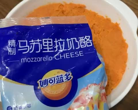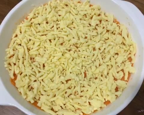 家里有芝士片的话可以先铺一片芝士片再撒芝士碎 我家没有,这也也够了