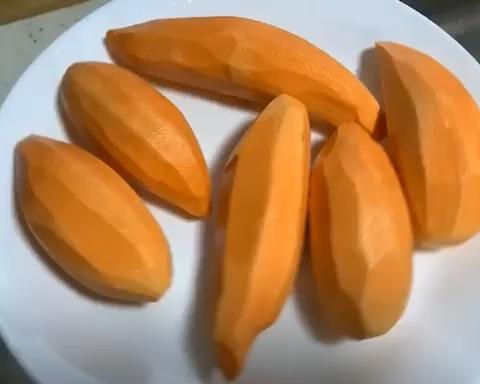选这种红心的红薯 ,很甜 ,没有筋,很粉,我做的时候都不另外放糖的,大家可以根据自己喜欢的甜度来加!