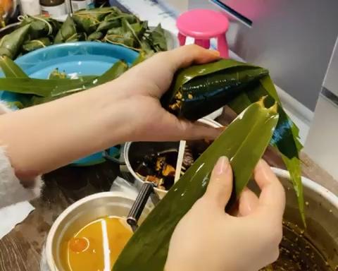 三小时后开锅喽,整个房间都是粽子的香味。想吃的直接吃就可以了,不过这个时候糯米的状态还不是最好。其余需要存放的,待自然冷却后继续在汤之内浸泡一晚,第二天沥干汤汁放入冷冻层,几个月也不会坏。要吃的时候,沸水煮15分钟或蒸箱20分钟。