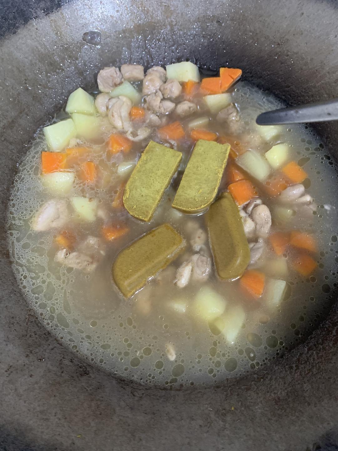 保持小火,放入咖喱块。