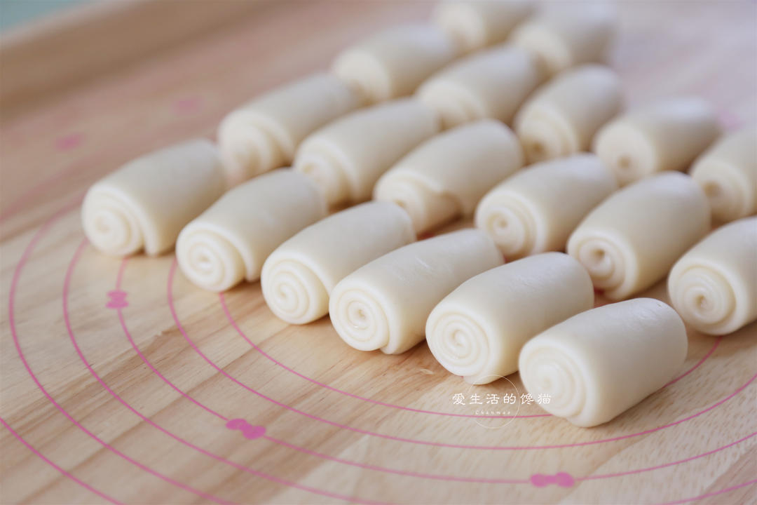 两手协助的旋转,再用虎口收紧,收口朝下放在烤盘上。