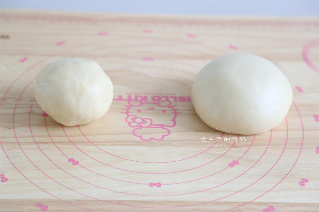 油酥分成10等份,油皮也分成10等份(图里的是20个的量)。