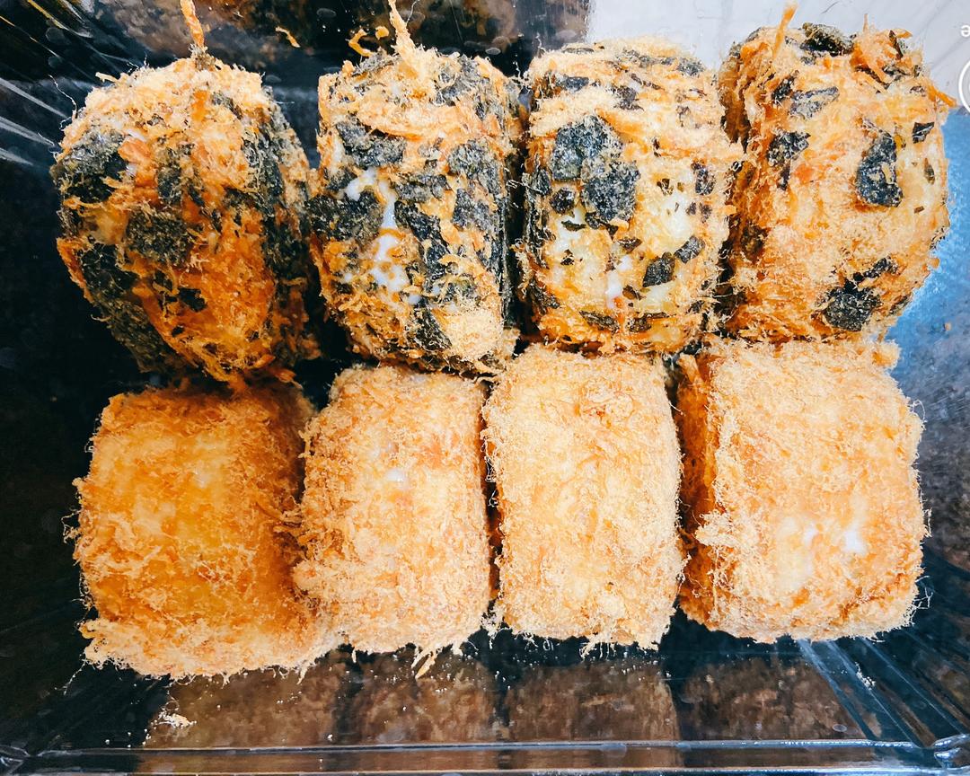 面包全身刷上沙拉酱后,放在肉松里滚一圈就行了。
